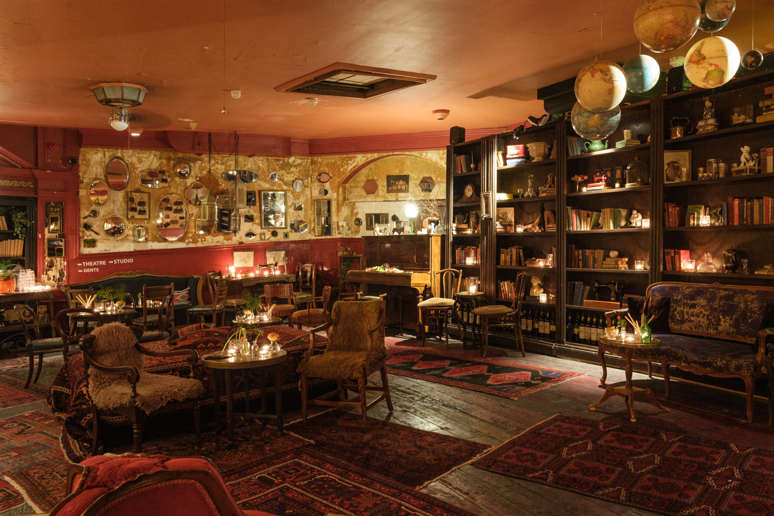 The lighting in the bar is low, as it is predominantly lit by candles, creating an atmospheric and intimate environment. While the bar itself is not fully accessible, our front-of-house team can bring drinks to you anywhere in the building, both before and after the show.